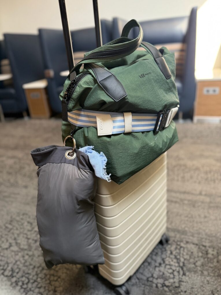 Know someone who travels a lot? Get them the Traveler Sleep Crown so they can relax no matter where they are. As youāll see below, mine is always attached to my bag. I am not ashamed to pull it out anywhere – airport lounges, car rides, even the occasional awkward train nap. I bring extra Traveler covers so I can use it without worrying about germs.